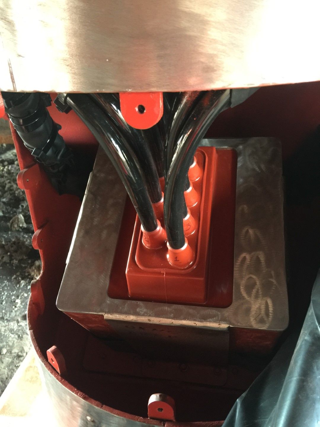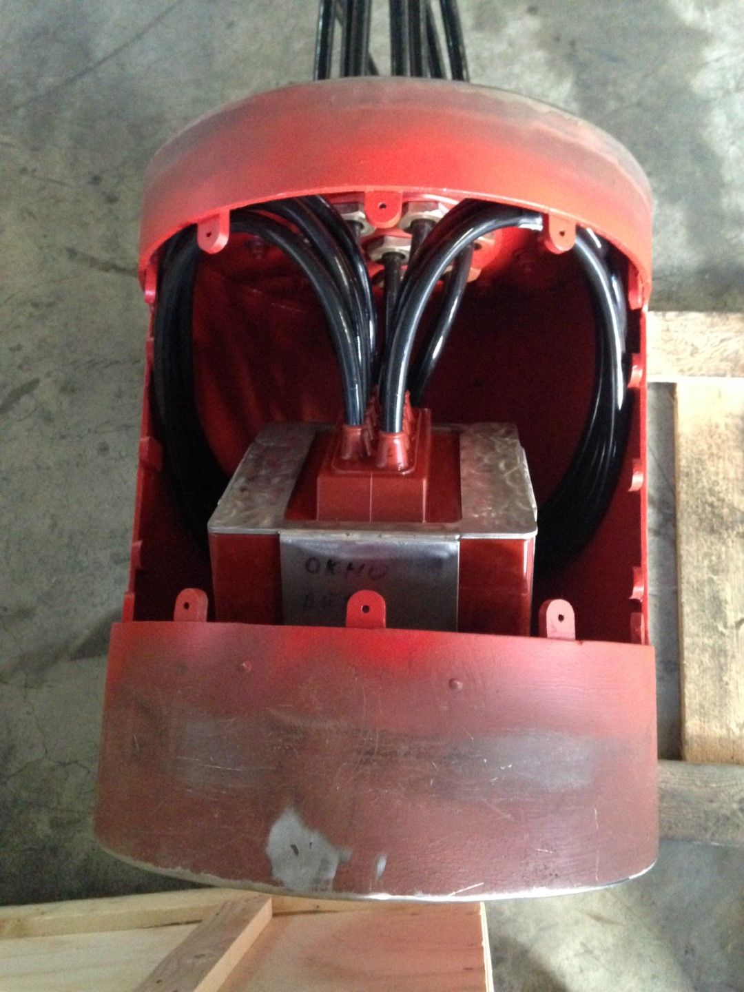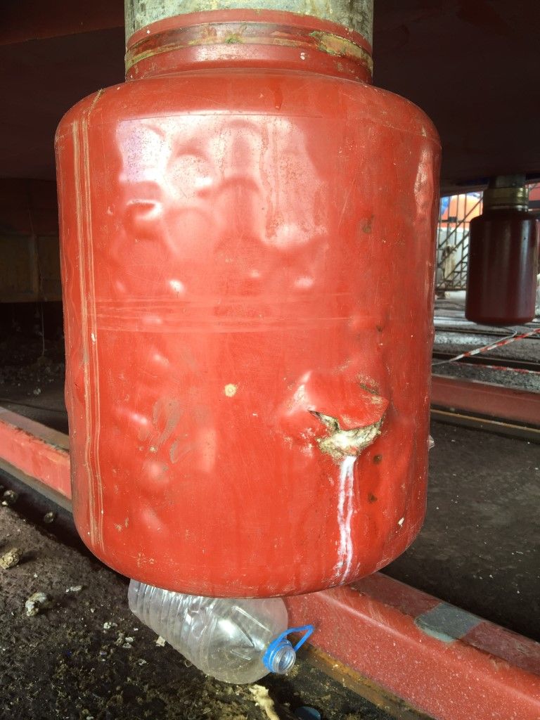 After a series of tests and measurements were done, divers were invited to inspect the transducer. Inspection shown that there was some kind of mechanical damage to the protective coating and now transducer is totally damaged by barnacles.